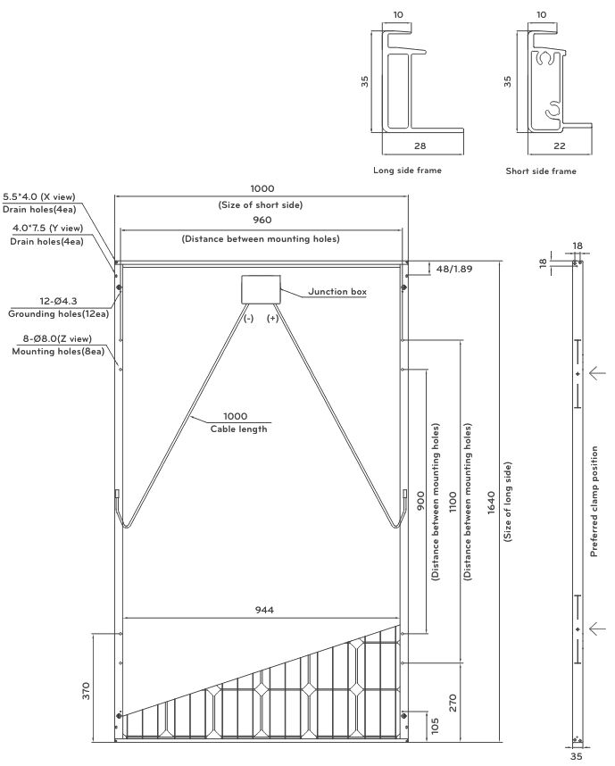 Dimensions (mm) D 1640 x W 1000 x H 35